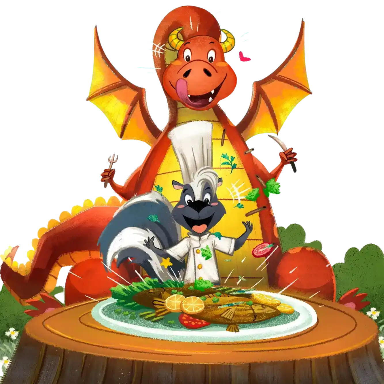 The Nose Knows is a story about soul food. Written by a real chef, the story follows a skunk on a heartfelt journey to introduce a new way of cooking and eating to a dragon. Through food, the tale explores connection, emotion, and the deeper meaning of nourishment beyond the plate.